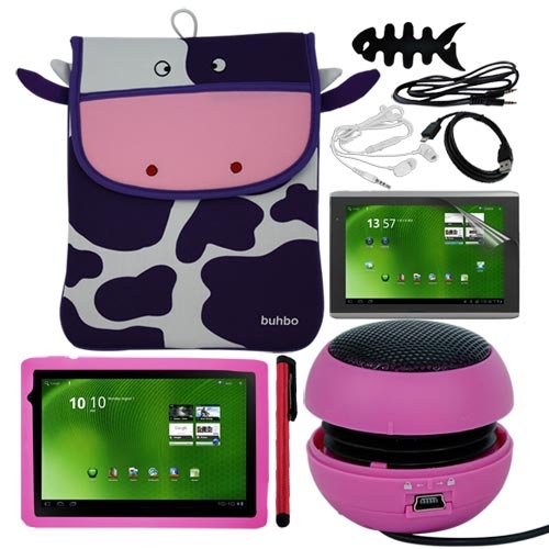 Premium bundles with Cow Memory Foam Case + Screen Protector + Stylus pen + pink Silicone Case + white Earphone w/mic + Fishbone Holder + 3.5mm Stereo Cable + Micro USB Data Cable + pink Mini Hamburger Speaker for Acer Iconia Tab A500 Tablet Review
