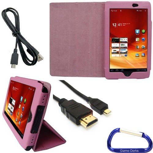 Gizmo Dorks Faux Leather Folio Case (Pink), Micro USB Cable, and HDMI Cable with Carabiner Key Chain for the Acer Iconia Tab A100 Review
